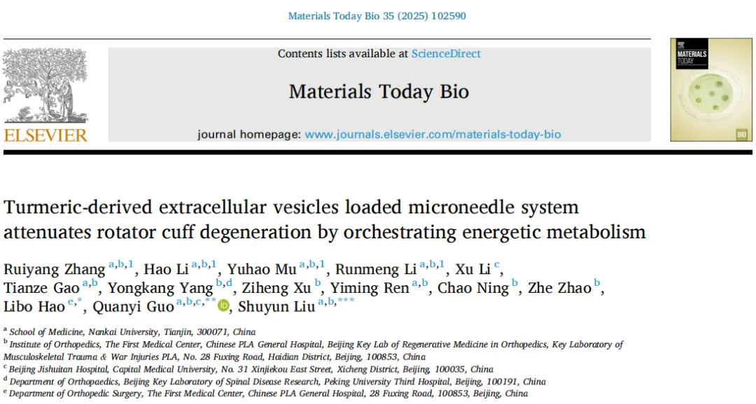 客户论文精选|姜黄来源的细胞外囊泡负载微针系统通过调控能量代谢减轻肩袖退变