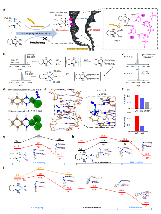 为破解这一困境,研究团队研发出ROS非依赖型铂类配合物Complex 1,其核心机制为在X射线照射下释放高活性铂氮烯,通过N-N耦合与DNA碱基形成共价键,直接造成DNA双链断裂。而这一核心机制的验证,全程依赖锐视SHARP 1000的精准放疗支持,其稳定的剂量输出与精准定位,确保了铂氮烯在肿瘤局部高效生成,为研究奠定关键技术基础。